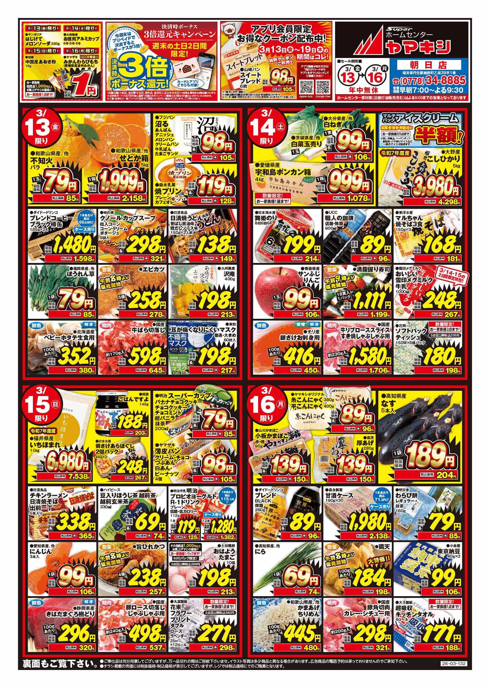 有効期限 3/13(金)~3/16(月) 朝日店のチラシ