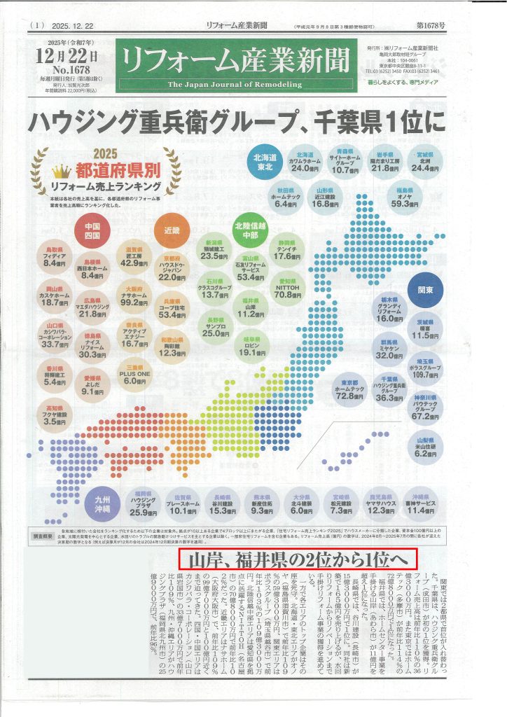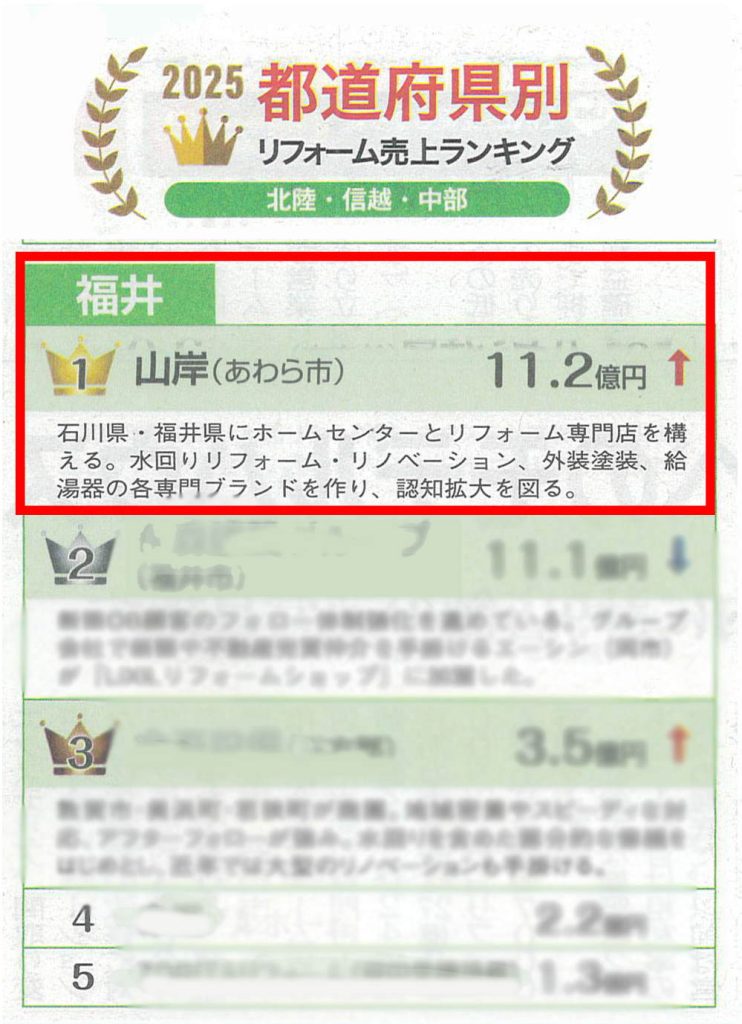 当社が、福井県でリフォーム売上No.1の会社として紹介されました。